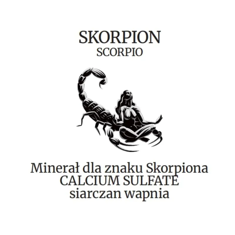 Produkt wytworzony w 100% z wyciągów roślinnych. Minerał dla znaku Skorpiona. CALCIUM SULFATE — siarczan wapnia.