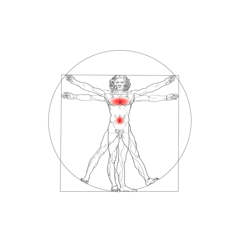 Elastyczne tkanki, piersi, żołądek, śledziona, serce, zęby, kości, mięśnie, płyny ustrojowe i błony śluzowe. Żebra, przepona, jama piersiowa, otwarcie przełyku z przepony, odźwiernik, dno żołądka (ventriculus), żyły żołądkowe gastryczne, większa krzywizna żołądka, odkształcenie krzywizny żołądka, ścianka żołądka, nerw żołądkowy-gastryczny, trzustka, kanał-przewód z trzustki do wlotu dwunastnicy, żółć z przewodu, tętnica (trzustkowo-dwunastnicza), mniejsza tętnica trzustkowo-dwunastnicza, śluz żołądkowy, naczynia krwionośne żołądka, naczynia krwionośne z narządów trawiennych, gruczoł sutkowy, brodawki sutkowe, chrząstka żeber, śledziona, dwunasty krąg piersiowy.