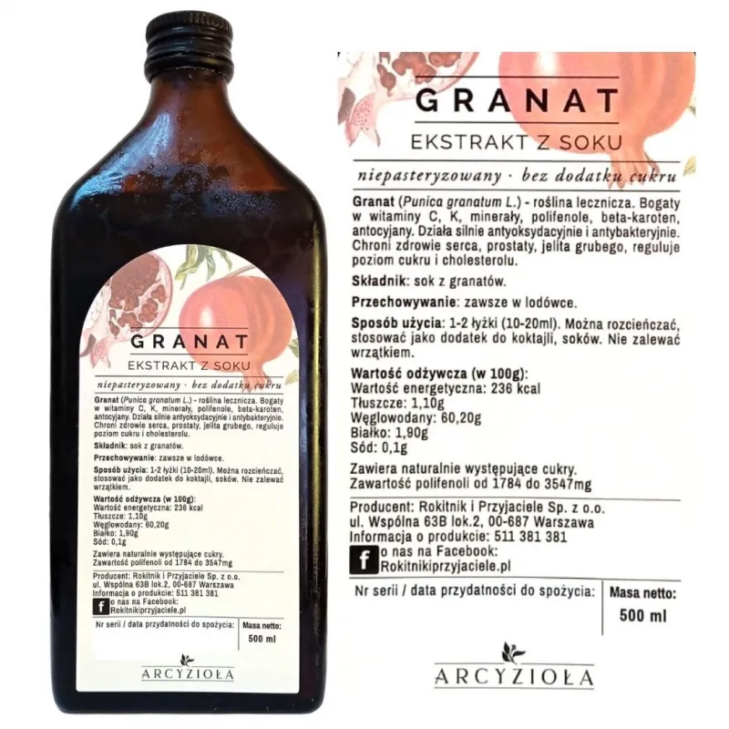 ARCYZIOŁA Granat 100% ekstrakt z soku 500 ml