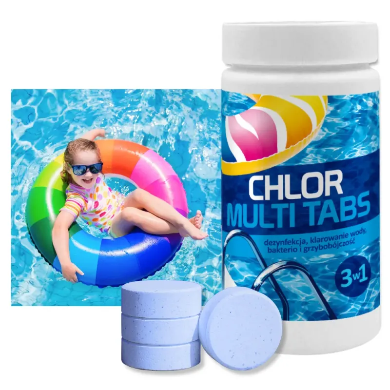 Nasze Chlor Multi Tabs 3w1 to innowacyjny produkt, który uprości pielęgnację Twojego basenu. Tabletki wolno rozpuszczające się gwarantują nie tylko skuteczną dezynfekcję, ale także poprawiają klarowność wody i działają przeciwko mikroorganizmom. Efekt? Niezwykle czysta i bezpieczna woda o pięknym, niebieskim odcieniu.