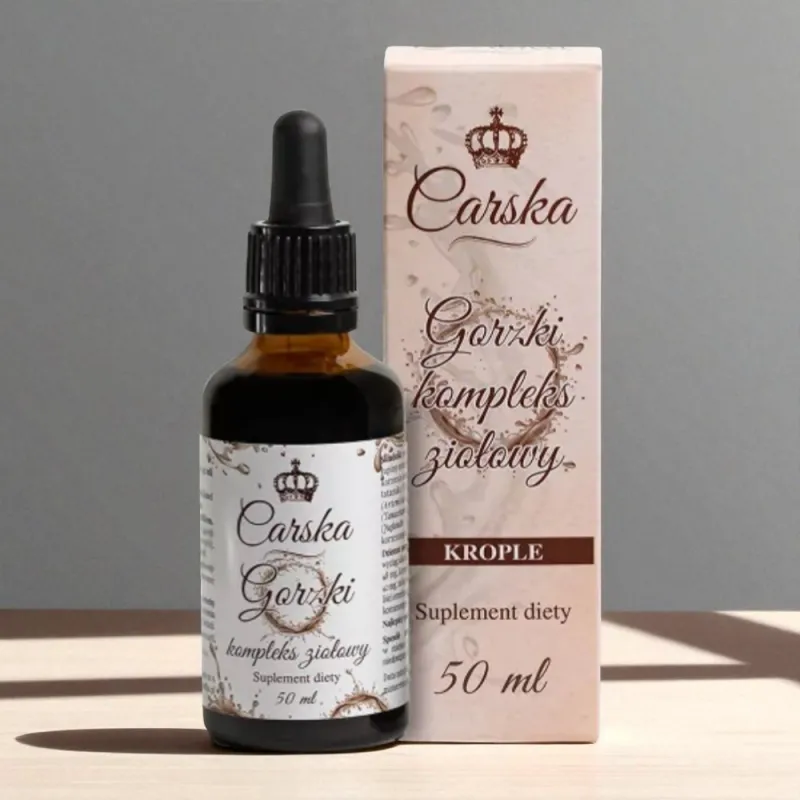 Poznaj głębię natury i tradycji z Carski Gorzki Kompleks Ziołowy 50 ml – wyjątkowym suplementem diety w formie kropli, który czerpie inspirację z dawnych, carskich receptur przekazywanych z pokolenia na pokolenie.