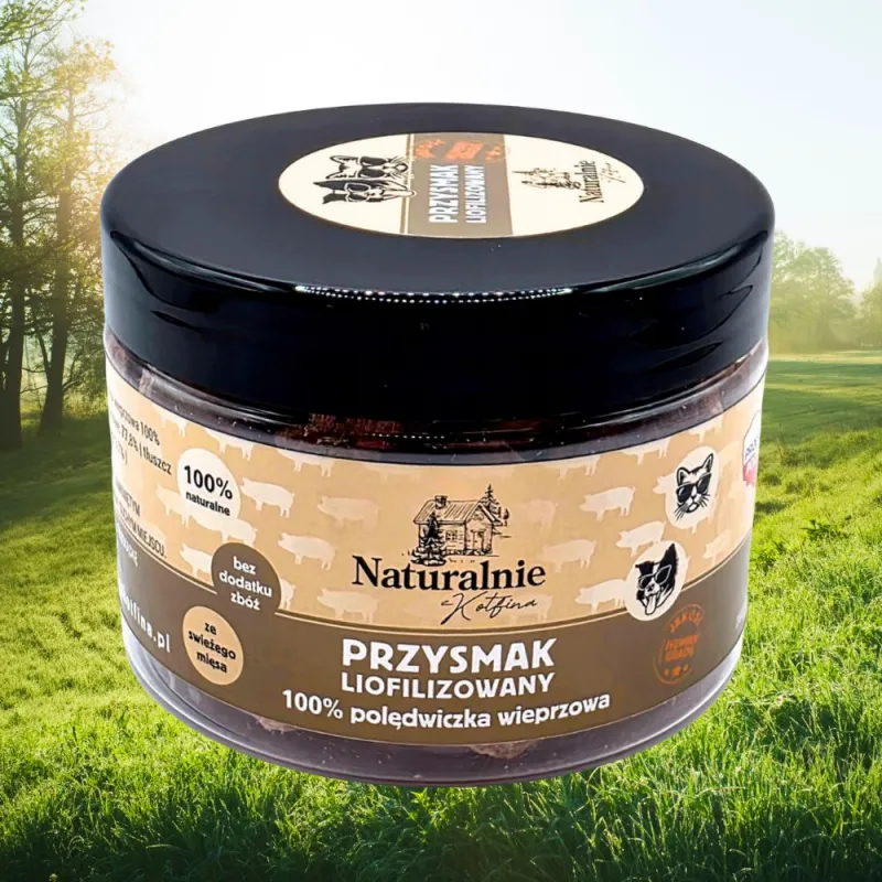 Podaruj swojemu pupilowi Liofilizowaną Polędwiczkę Wieprzową 100 % (50 g) od Naturalnie z Kotfina! Ten w pełni naturalny, ekologiczny przysmak łączy wyśmienity smak, bogactwo składników odżywczych i troskę o środowisko.