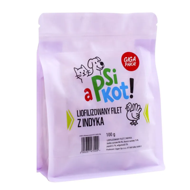 A PsiKot – Liofilizowany Filet z Indyka MEGA PAKA 100g dla Psa i Kota