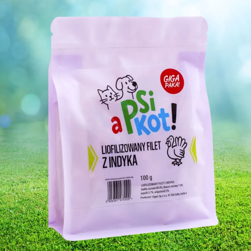 Rozpieszczaj swojego pupila z A PsiKot – Liofilizowanym Filetem z Indyka 100% (100g)! Ten naturalny, hipoalergiczny przysmak to zdrowa i ekologiczna przekąska dla psów i kotów, pełna smaku i wartości odżywczych.