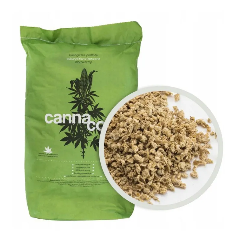 - Naturalny skład – kukurydza + konopie, bez chemicznych dodatków, barwników i zapachów.