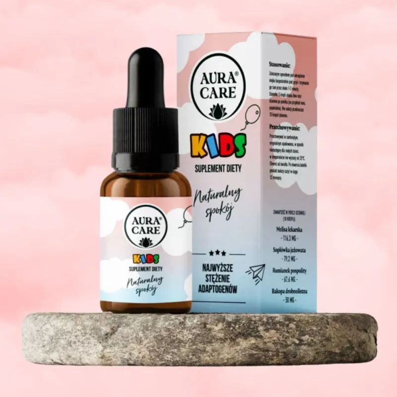 Naturalny Spokój Aura Care Kids to łagodna, naturalna i bezpieczna formuła wspierająca emocje oraz wyciszenie dziecka każdego dnia. Idealna dla wrażliwych, przebodźcowanych i zmęczonych nadmiarem wrażeń maluchów i starszaków.