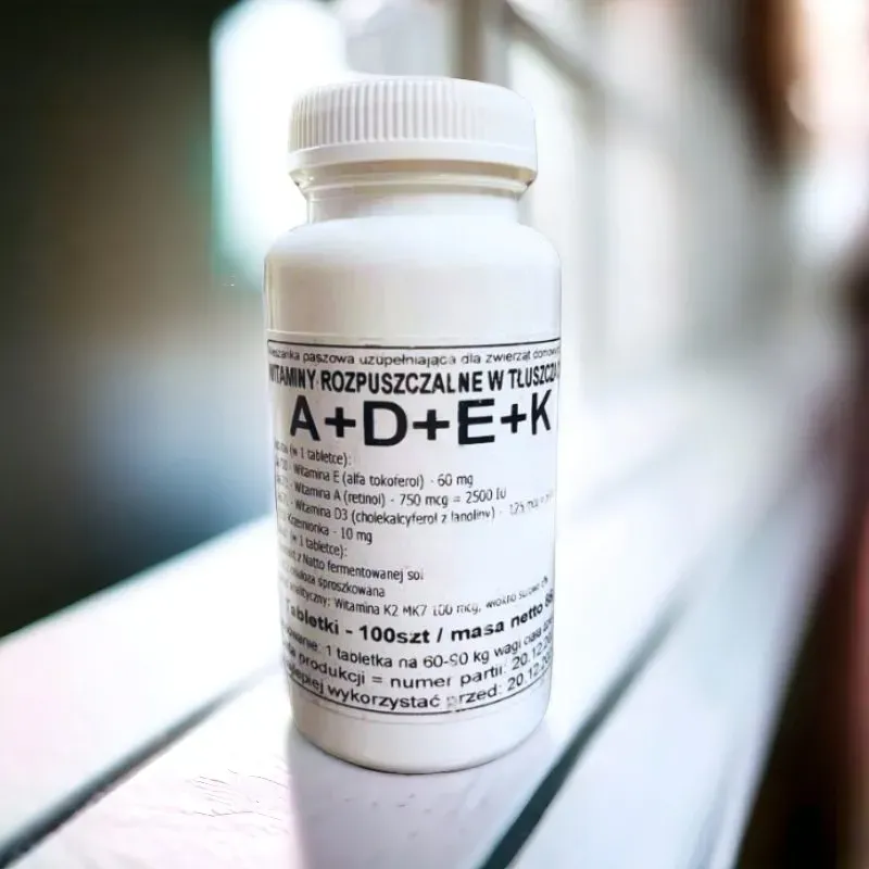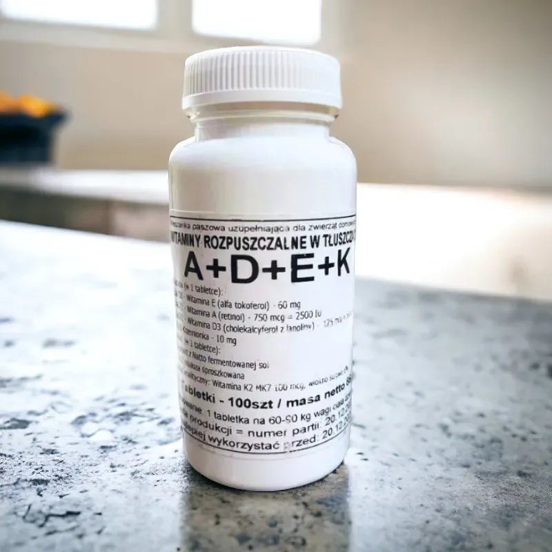- Kompleksowe wsparcie: Połączenie witamin A, D3, E i K2 zapewnia wszechstronne działanie na zdrowie zwierząt.