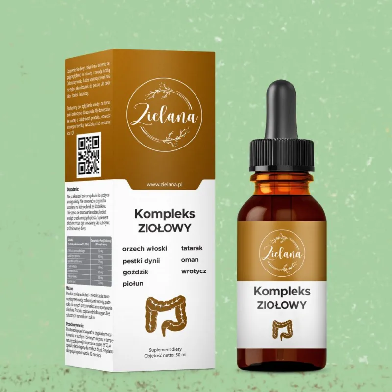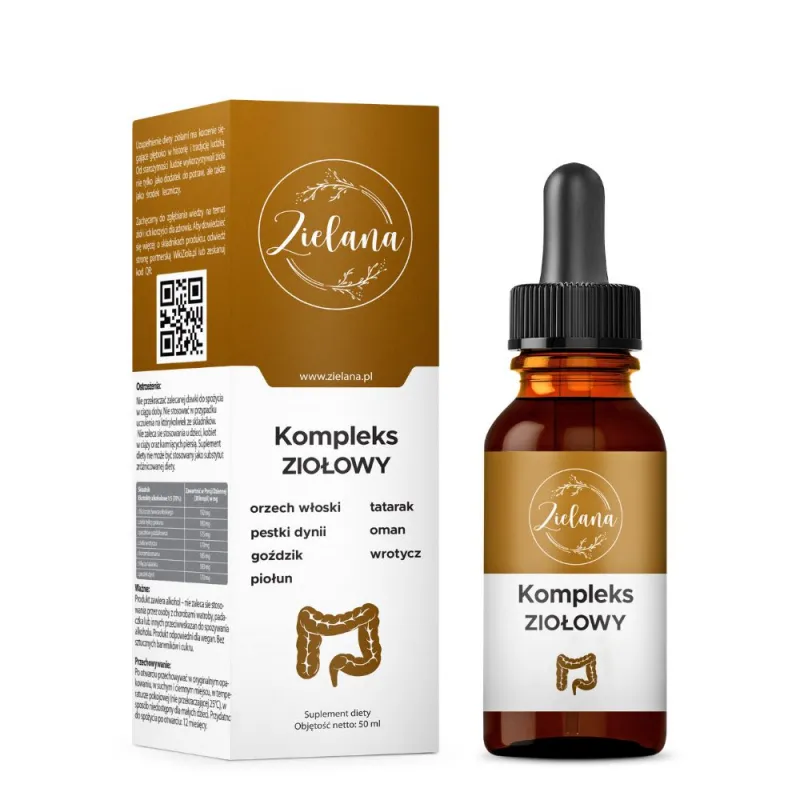 ZIELANA Kompleks Ziołowy to wegański suplement diety w kroplach, opracowany na bazie kompozycji ekstraktów roślinnych znanych z tradycyjnego zielarstwa. Produkt stanowi naturalne uzupełnienie codziennej diety w składniki pochodzenia roślinnego, wspierające zachowanie równowagi organizmu i dobre samopoczucie.
